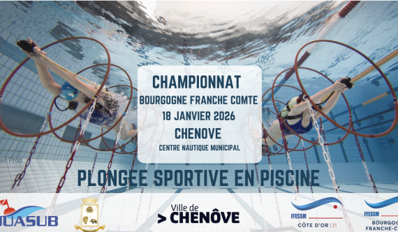 Le Comité Régional Bourgogne Franche-Comté et le CODEP21 organisent le 7ème championnat BFC de Plongée Sportive en Piscine ce dimanche 18 janvier 2026 à Chenôve (près de Dijon).